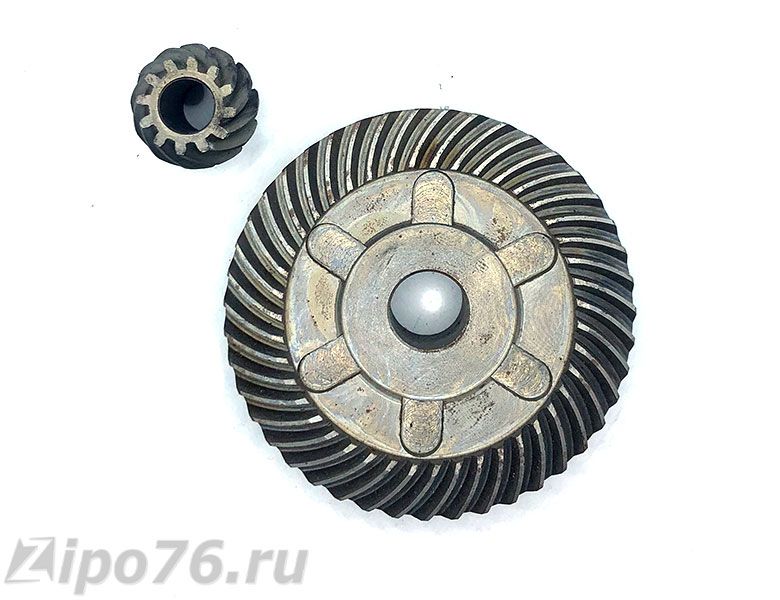 Купить коническая пара для ремонта и обслуживания УШМ ИНТЕРСКОЛ 2100 и других аналогов. Две шестерни редуктора головы УШМ отличное качество прочны метал долговечная эксплуатация инструмента БОШ.