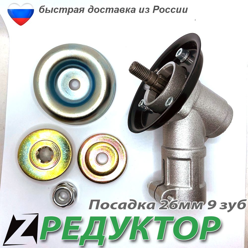 Редуктор для бензокосы вал 9 зубов штангу 26мм посадка круг 25,4. Подходит для вех Китайских триммеров ПАТРИОТ СОЮЗ ХЮТЕР ШТУРМ и посадка 9 зубов вал.