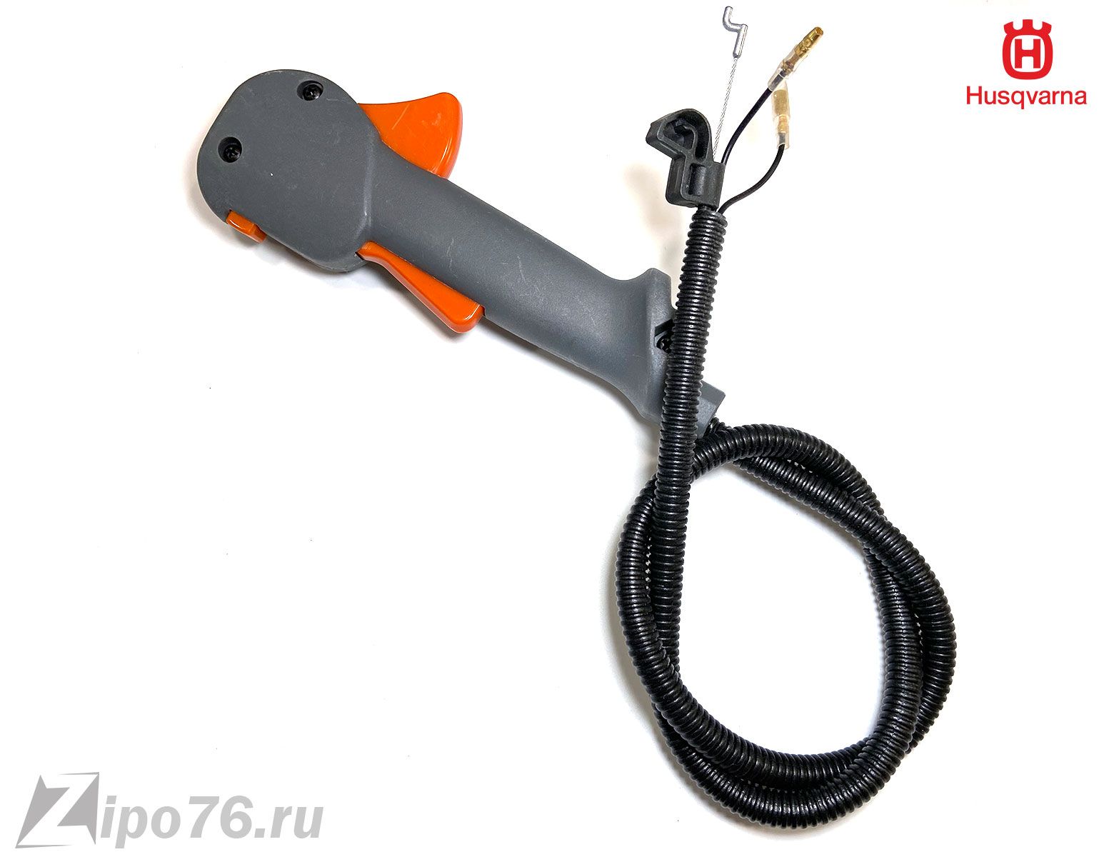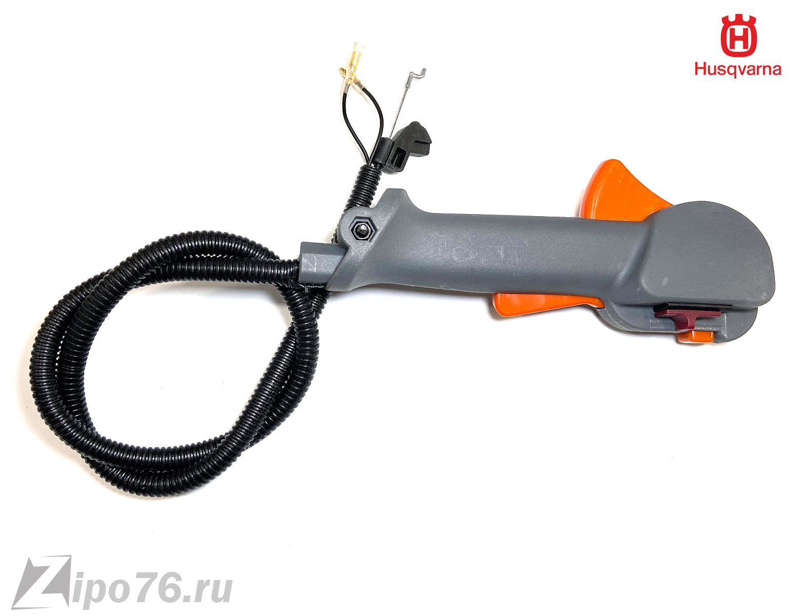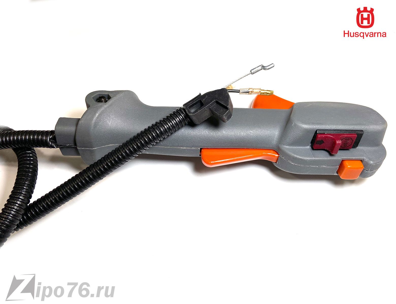 Ручка триммера хускварна 128 в сборе пластиковая аналоговая ручка с проводами глушилки и тросом газа. Установка очень простая ставим на один болт ручку к штанге триммера и подключаем провода к катушке жащигания и трос гана на карбюратор.
