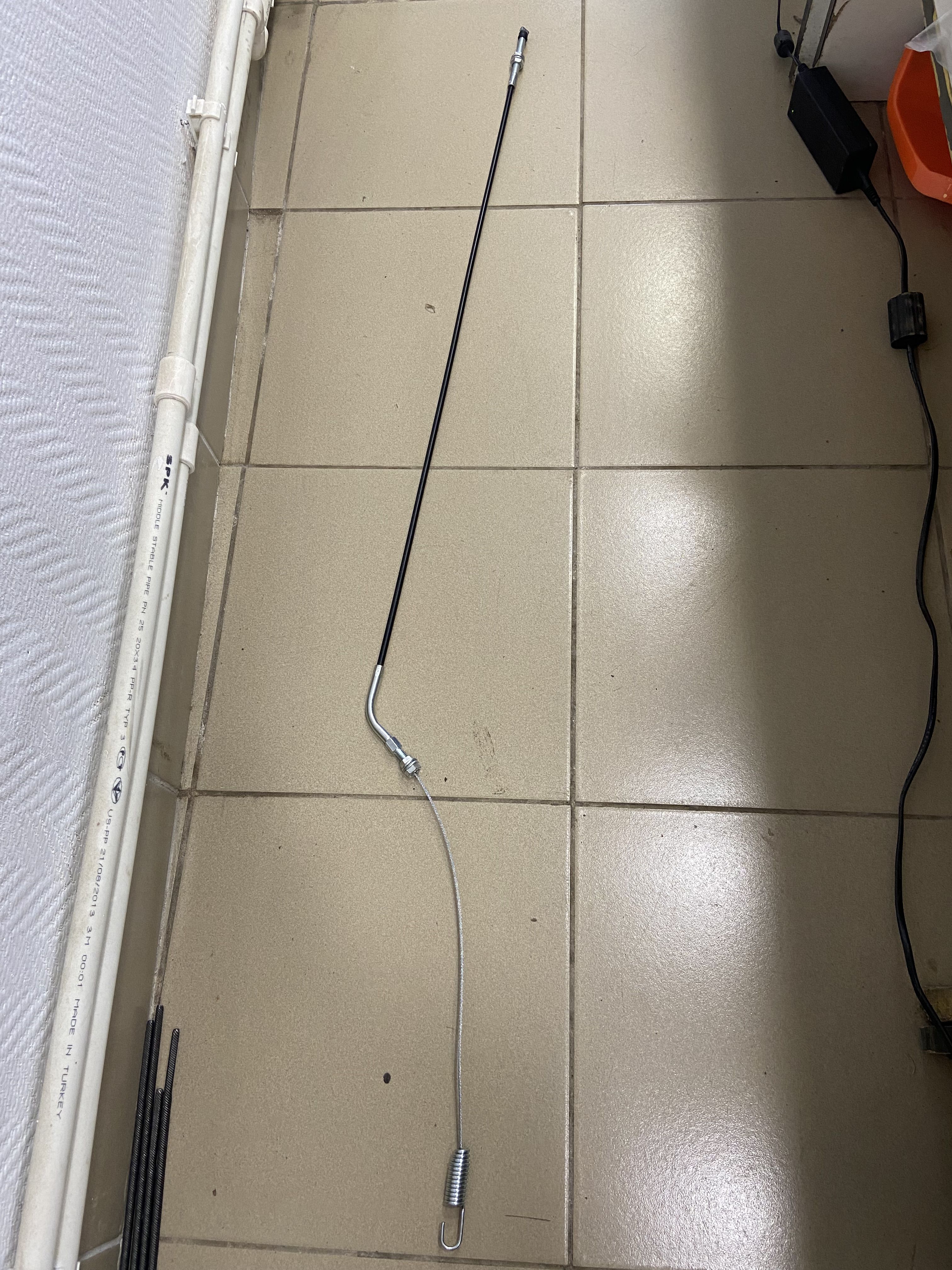 Трос включения хода снегоуборщика длинна 113мм. на конце Т образный зацеп на другом пружина имеются гайки регулировки натяжения. Подходит трос для снегоуборщика КИТАЙСКОГО и других