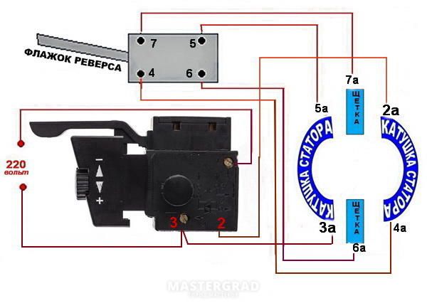 Для правельного ремонта дрели, подключайте выключатель правельно.