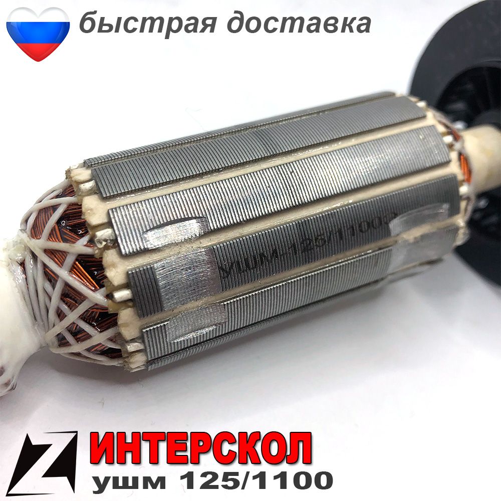 Якорь для ИНТЕРСКОЛ УШМ 125 1100Вт. Подходит на самую популярную УШМ 125 круг на 1100Вт и аналогов УШМ. Доставка якоря для ИНТЕРСКОЛ по России. Большой выбор Якорь.