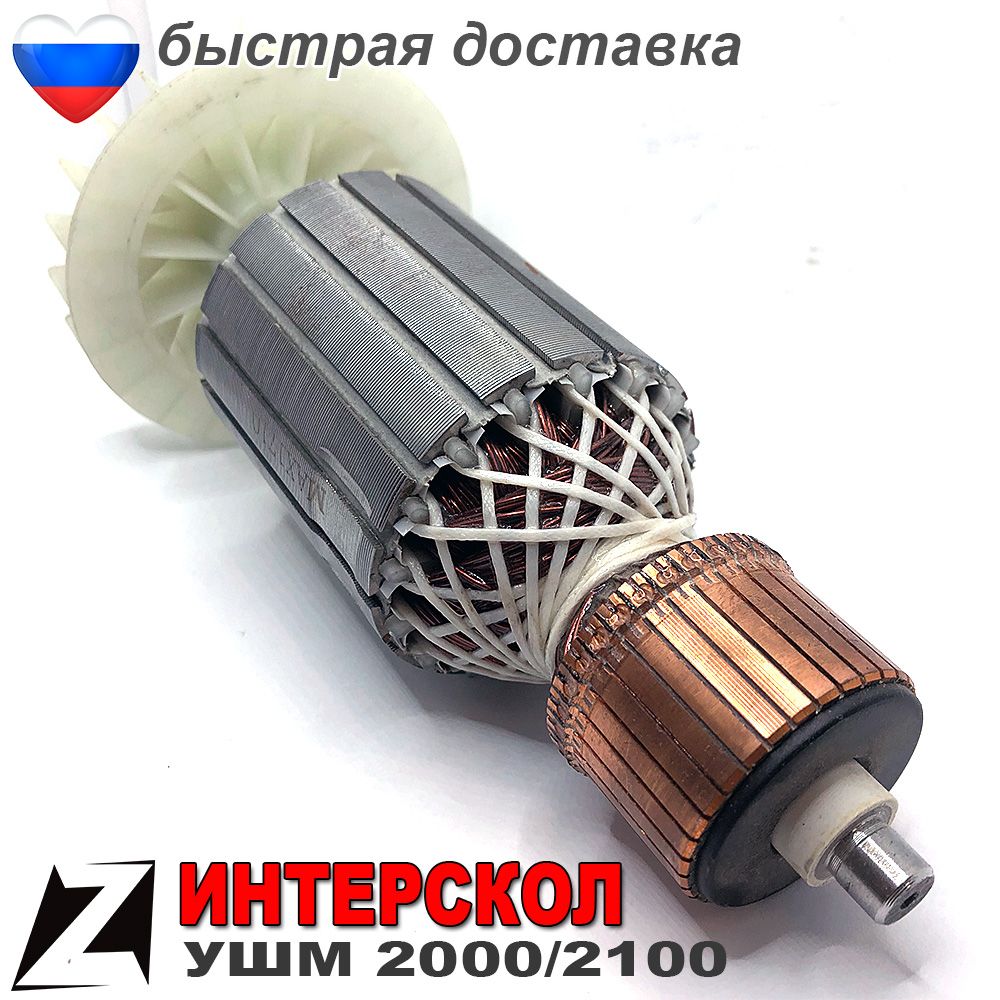 Якорь для ушм ИНТЕРСКОЛ подходит на модели с 230 кругом 2000/2100. Ротор в наличии хорошее качество все сделано добротно, у нас быстрая доставка по России большой выбор запчастей для УШМ ИНТЕРСКОЛ